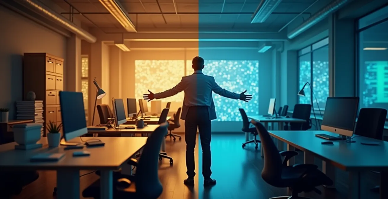 Die größte Hürde bei der Digitalisierung ist selten technischer Natur. Es ist die menschliche Angst – aber nicht nur die offensichtliche Angst vor dem Jobverlust. Viel tiefer sitzt die Furcht vor dem Verlust von Status, Relevanz und Identität. Ein erfahrener Mitarbeiter, dessen Wert sich über Jahrzehnte durch die Beherrschung eines komplexen, analogen Prozesses definiert hat, sieht seine „Status-Währung“ über Nacht entwertet. Die neue Software macht einen Neuling potenziell produktiver als ihn. Das ist keine rationale Angst, sondern ein emotionaler Angriff auf das Selbstwertgefühl. Laut der aktuellen Digitalisierungsstudie 2024 haben 33% der Befragten Angst, von KI ersetzt zu werden, was diese tiefsitzende Verunsicherung unterstreicht.